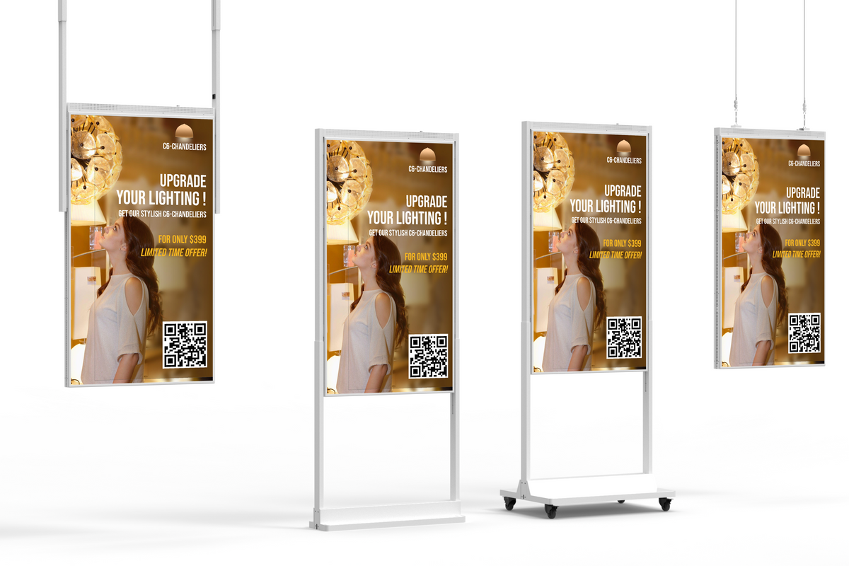 Combining form and function, the display features a slim, minimalistic profile that’s both lightweight and durable. Its industrial-grade construction is built for long-term commercial use, while the streamlined design complements modern retail and hospitality aesthetics.